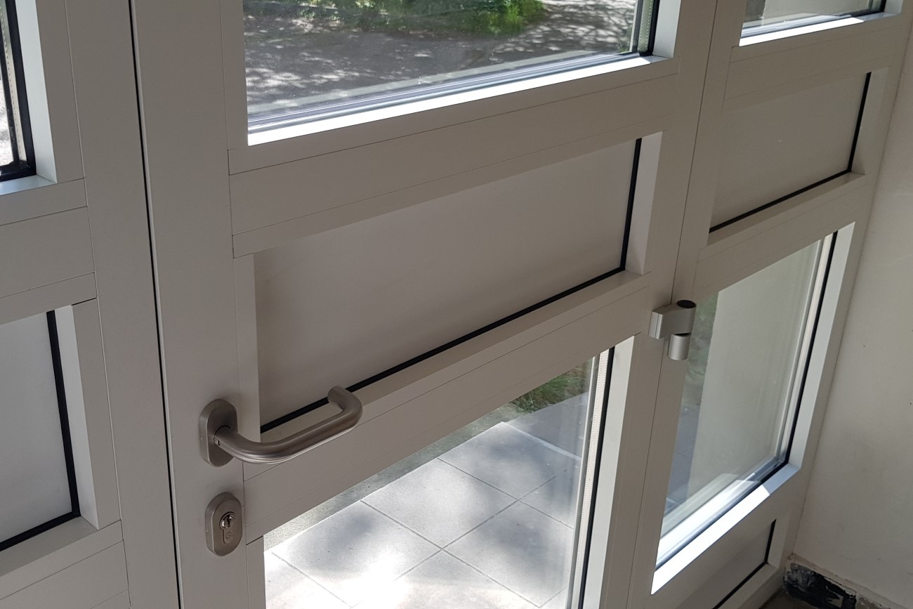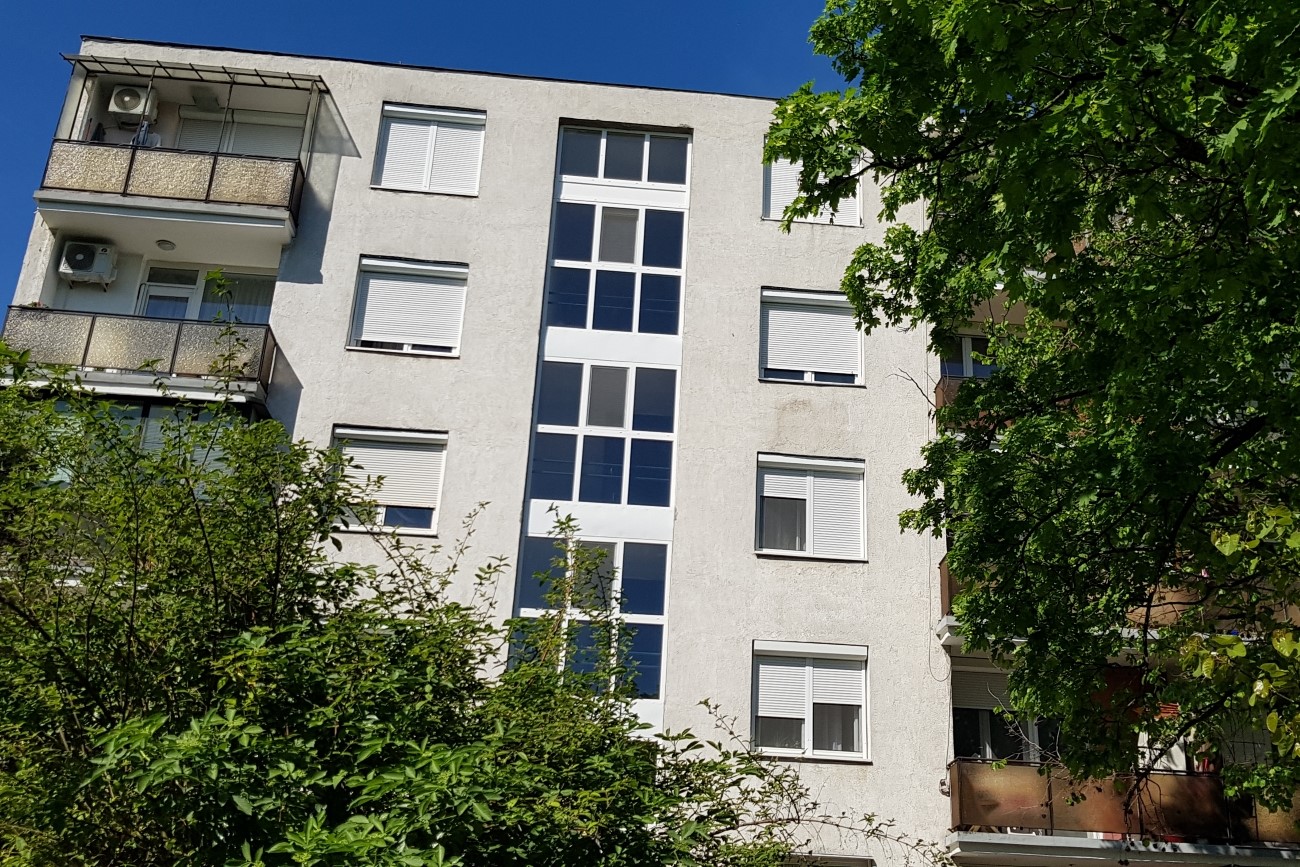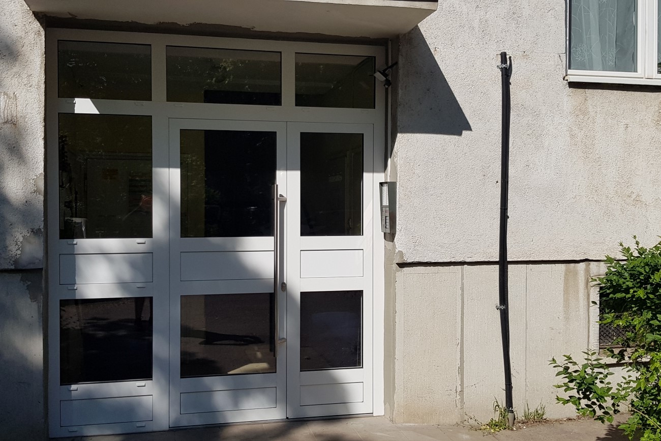 Mindhárom lépcsőháznál az összes homlokzati nyílászárót cserélte cégünk, beleértve a bejárati ajtókat is. Az első ütemben a homlokzati szerkezeteket műanyag nyílászárókra normál fehér színű profilt alkalmazva, míg a második ütemben a bejárati ajtókat építettük be, fehér színű alumínium profilt használva, mindkét esetben két rétegű hőszigetelt üvegezéssel. A bukó -nyíló ablakokra fix alumínium peremes rovar -és szúnyoghálók kerültek, ezzel megakadályozva a nem kívánt bogarak és szúnyogok bejutását a lépcsőházba. A kétszárnyú befelé nyíló, elektromos zárral ellátott bejárati ajtók oldal és felülvilágítókkal lettek megtervezve a beeső fény növelése érdekében. A belső oldalukra ajtókilincs, kívülre pedig modern tolórúd lett felszerelve.