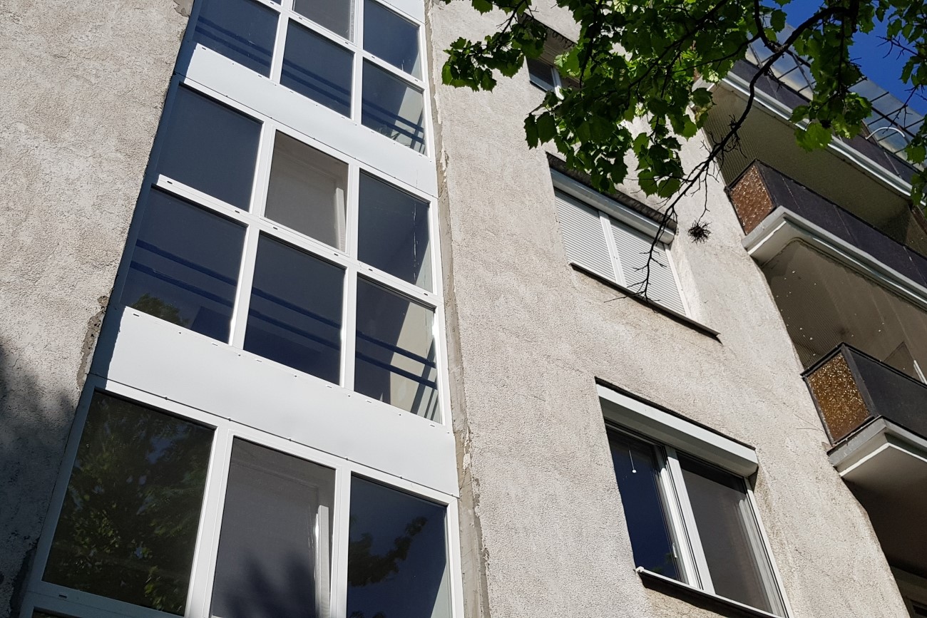 A bontás -beépítési folyamatok mindkét oldalt teljes körű helyreállítással valósultak meg. A lépcsőház belső oldali részén gletteléssel, míg a külső oldalon fagyálló vakolóanyaggal lettek helyreállítva a régi nyílászárók bontása közben keletkezett kisebb falsérülések. Az alumínium szerkezetek beépítésénél EPDM fóliát alkalmaztunk.